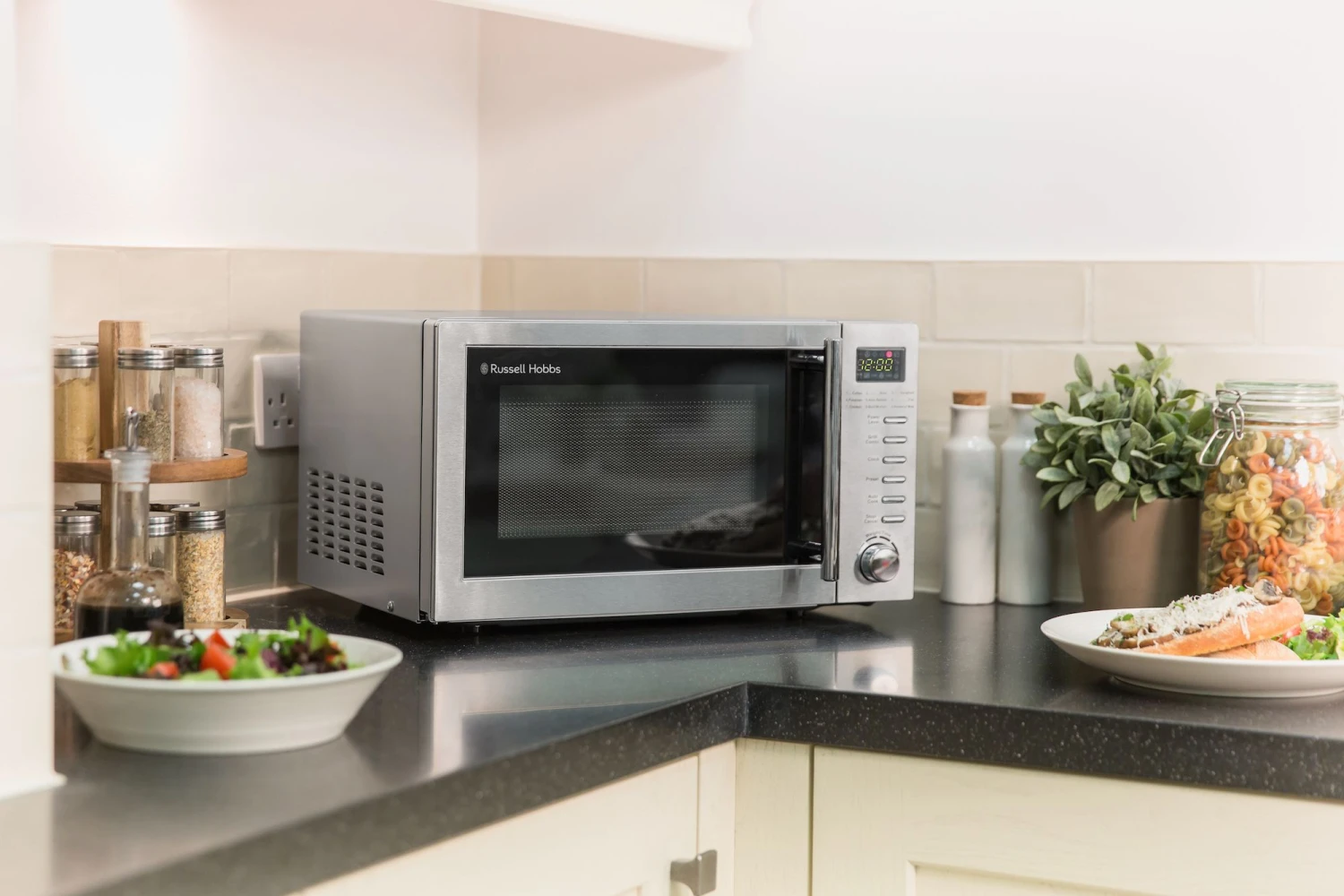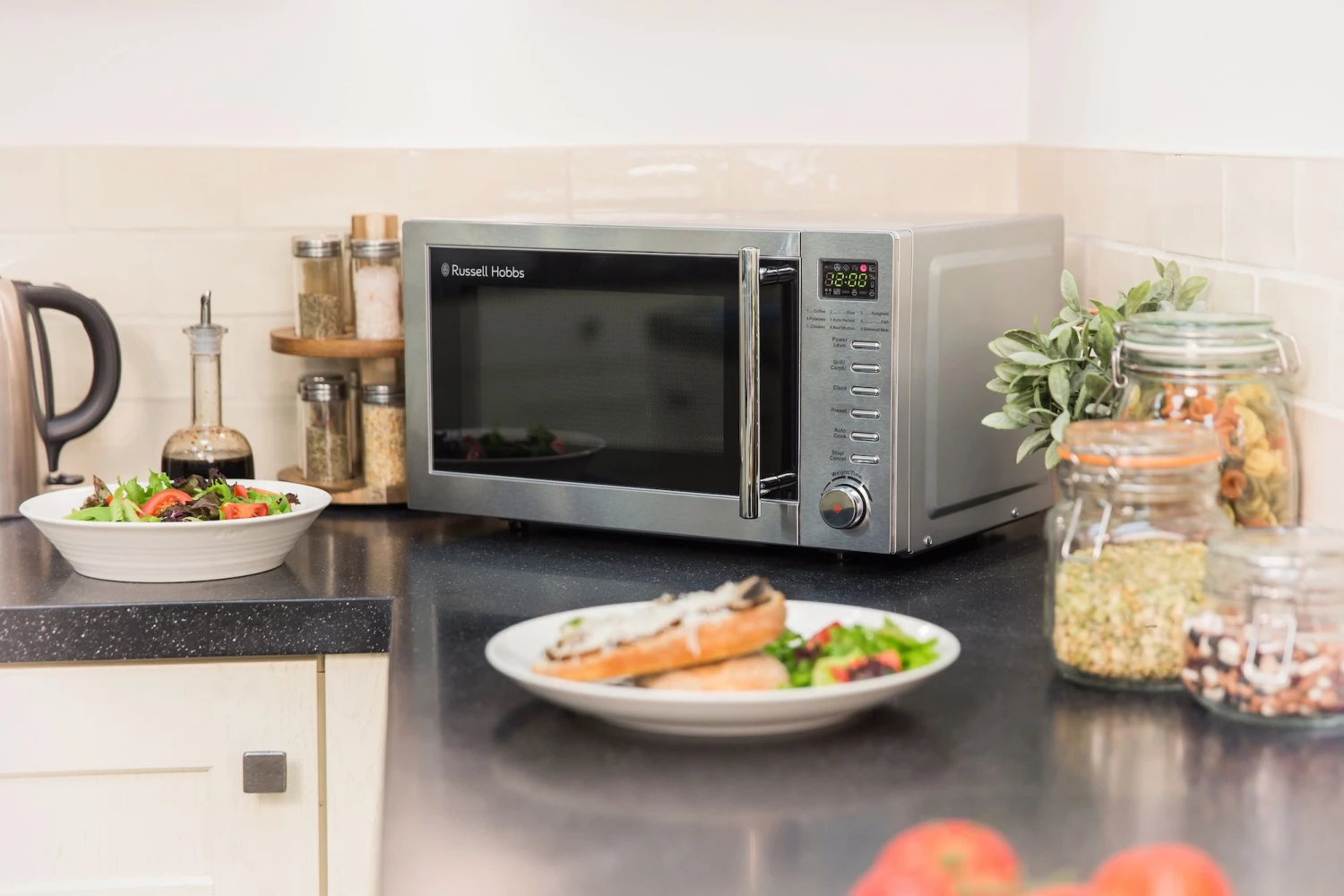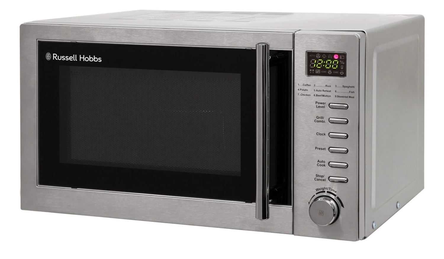 The Russell Hobbs RHM2031 microwave has a sleek and professional design. As well as an appealing look, this appliance also includes impressive functionality, with 800 watts of microwave power and a 1000 watt grill providing quick and convenient cooking in your home.