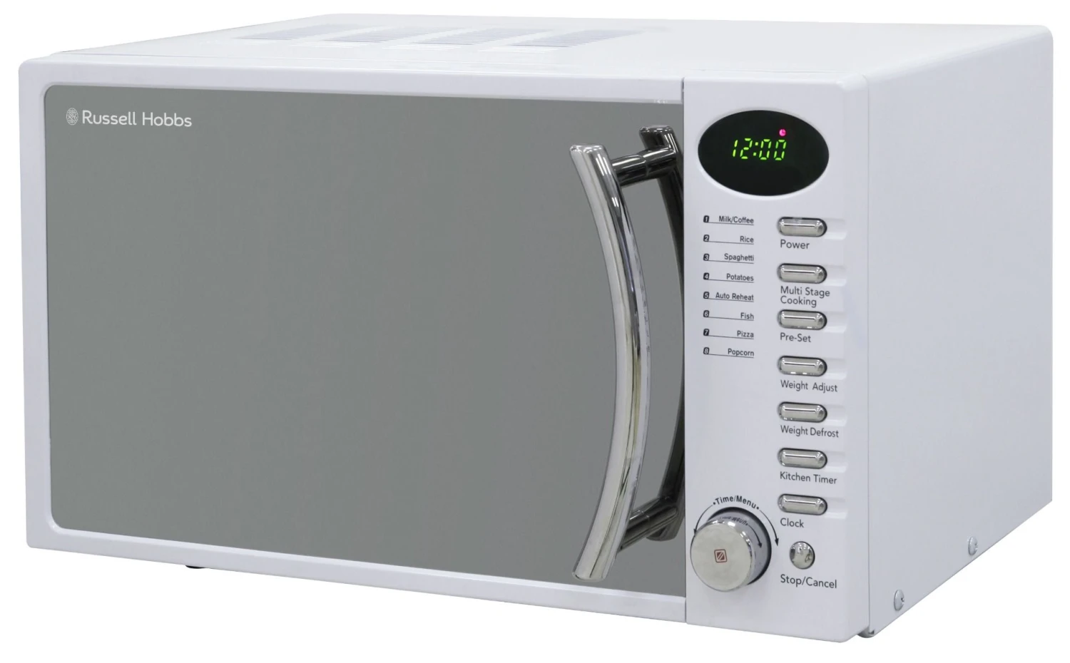 The Russell Hobbs RHM1714WC microwave has a sleek and stylish design, boasting an attractive mirror door finish. This eye-catching appliance is simple and easy to use, with 700 watts of microwave power, offering quick and convenient cooking in your home.