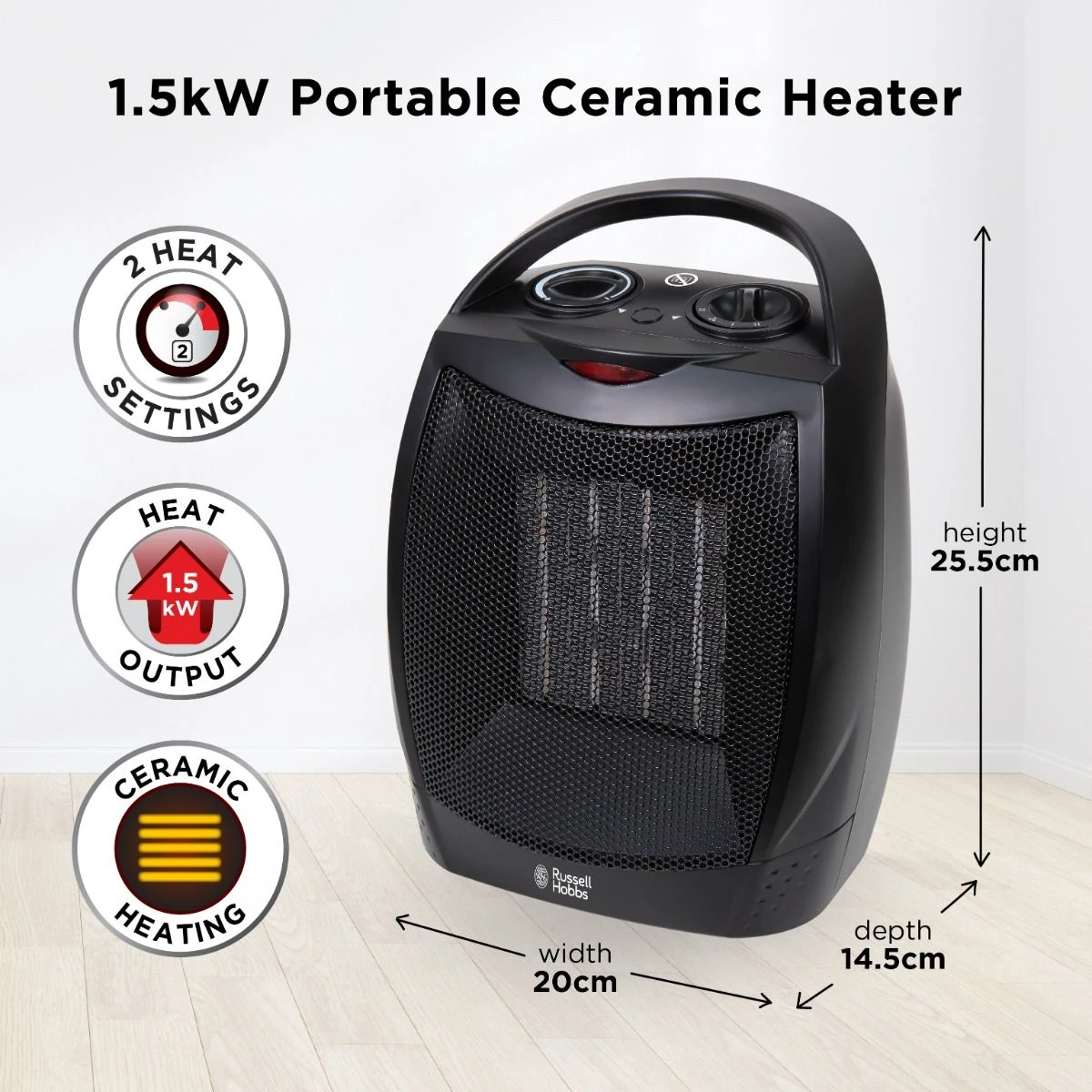 This fan heater offers 2 heat settings for complete flexibility during cold spells and winter months – 750W for low heat and 1500W for high heat. The built in adjustable thermostat helps you maintain the perfect level of warmth.