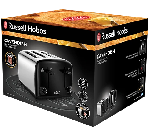 Make every morning an adventure with the Cavendish Black 4 Slice Toaster. With even shade technology and wide slots, the Cavendish Black 4 Slice toaster looks fabulous in any hope and is ideal for crumpets, teacakes and thicker slices of bread. So sit down and enjoy a tasty slice of toast because after all, every good adventure starts with a good breakfast.