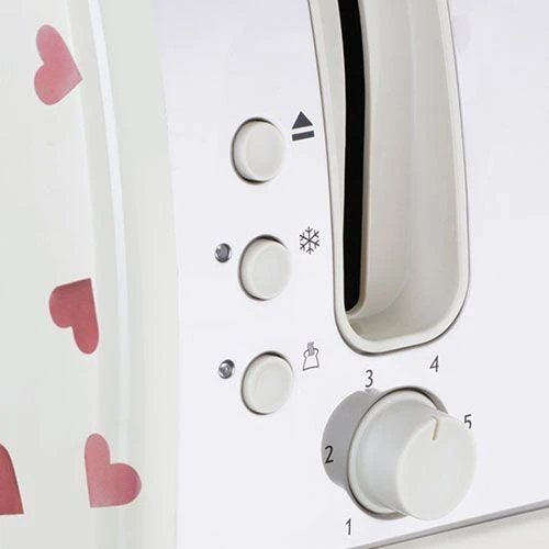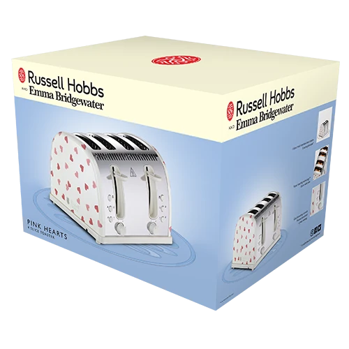 Two of the country’s best-loved household names, Russell Hobbs and Emma Bridgewater have collaborated to bring a touch of romance to the heart of your home with the Pink Hearts 4-slice toaster. This premium toaster complements Emma’s colourful pottery collection that features hand-drawn Pink Hearts, making each product feel different. It also has 48% faster toasting*, wider slots and a 2-slice option for smaller portions.