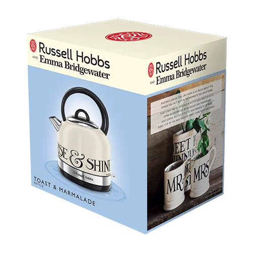 Russell Hobbs is proud to feature pottery designer Emma Bridgewater’s iconic Toast and Marmalade design in their latest breakfast collections. This stylish kettle has all the trusted features you’d expect from Russell Hobbs including faster boiling – a single cup is ready in just 45 seconds*. So if you’re looking to upgrade your kettle, wake up to Toast and Marmalade.