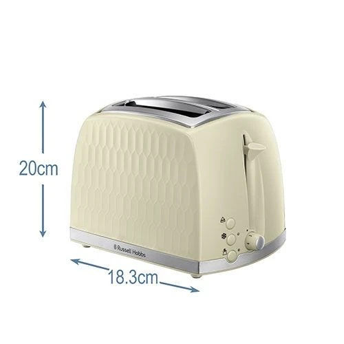 Keep your kitchen on-trend with the Honeycomb 2 Slice Toaster in a Premium Cream with a Textured Design. Letting you give your kitchen a makeover without blowing your budget, this toaster not only brings style to your countertop but it also comes convenient features too. Its High Lift Feature lets you lift your toast up to your fingertips so you can safely retrieve those smaller items, and the convenient Frozen, Cancel and Reheat functions mean you can take care of your every toasting need!