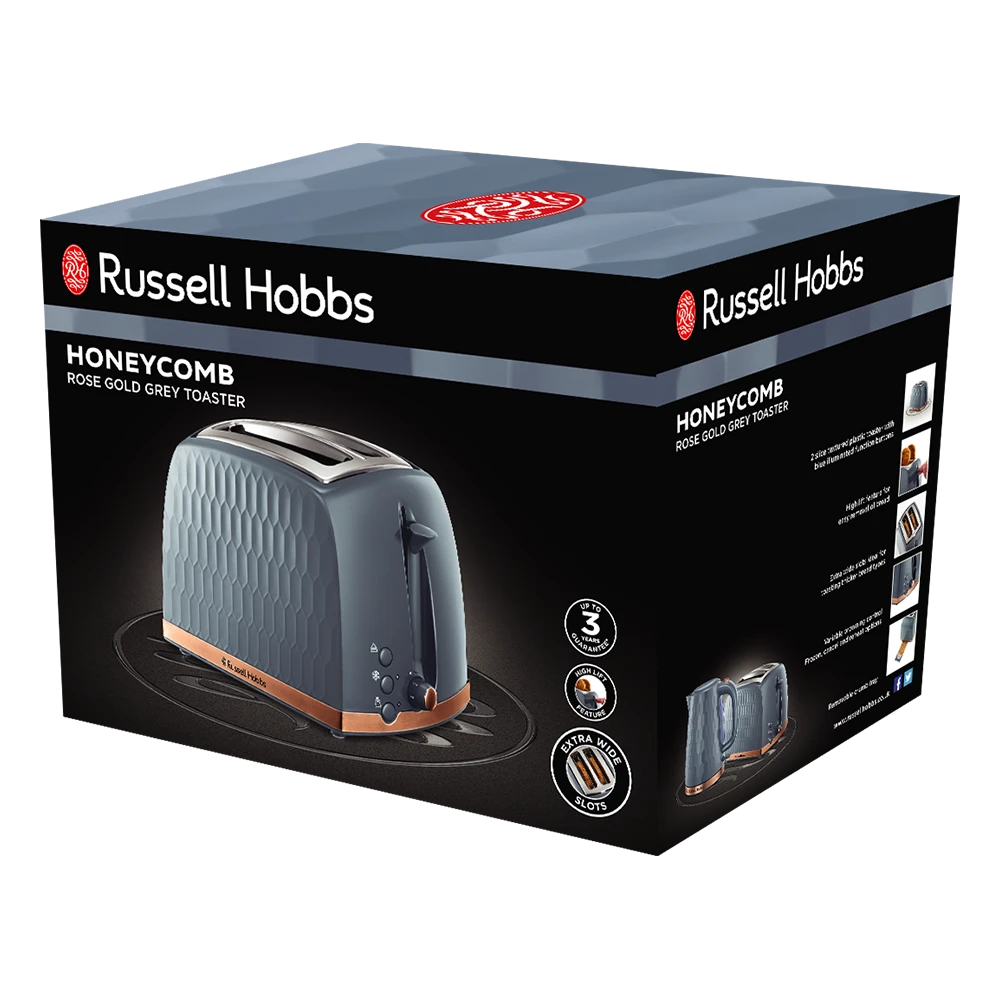 The Honeycomb 2 Slice Toaster combines a Honeycomb-Inspired Design with a Premium Grey Textured Plastic, to bring you this on-trend toaster. With a High Lift Feature for safe and easy toast removal – making breakfast has never been easier.