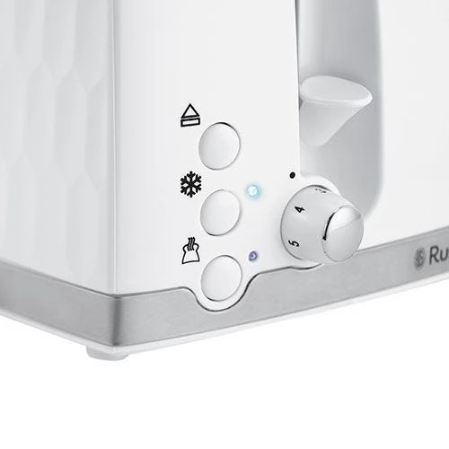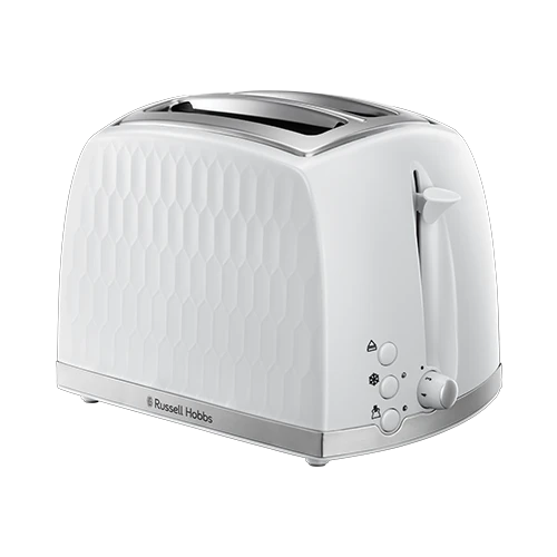 Keep up with the latest trends with the Honeycomb 4 Slice White Toaster. Bringing a little style to your breakfast routine, making over the kitchen has never been easier or more affordable. With a Textured Honeycomb-Inspired Design on a Premium White Plastic, you’ll want this toaster to take pride of place in your kitchen. Enjoy a crunchy slice of toast lifted up to your fingertips with the High Lift Feature, and take care of your every toasting need with the convenient Frozen, Cancel and Reheat functions. Giving you an exceptional performance without breaking the bank, this on-trend toaster lets you get the very best from your breakfast.