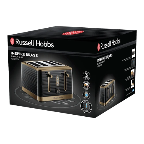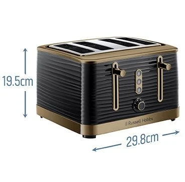 Make a stunning statement on your kitchen counter with the Inspire Brass 4 Slice Black Toaster. Combining a classic, stylish black with a strong brass finish – this toaster adds a touch of class to any kitchen. Be drawn in by its unique design of entrancing, textured ripples that endlessly wrap around every aspect. With 4 large slots it’s the perfect size to bond over breakfast with those that matter most. So switch off from the world, push down the lever and get back to truly enjoying life with a delicious breakfast and great company.