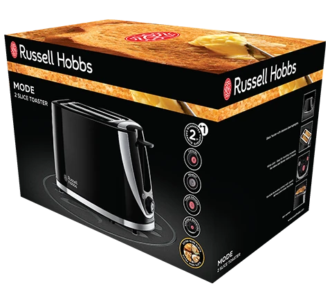 The Russell Hobbs 21410 Mode 2 Slice Black Toaster is a good-looking appliance with all the function and features you’d expect from Russell Hobbs. With its striking gloss black plastic housing and stainless steel accents it’s packed with helpful features including extra wide slots to easily toast thicker slices of bread, crumpets or teacakes.