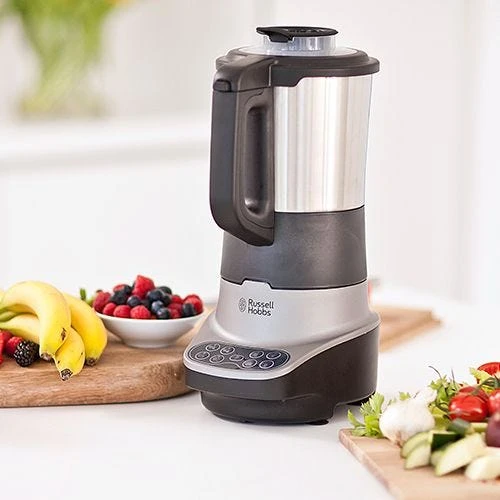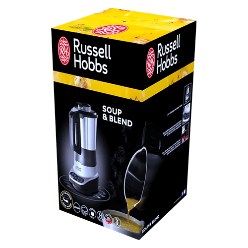 Healthy homemade soup and smoothies made easy Homemade soup tastes better and has none of the added ingredients and preservatives you find in tinned soup. So instead of reaching for the tin opener, make your favourite soup just how you like it, quickly and easily, in the fabulous Russell Hobbs Soup & Blend. This specially designed jug blender with heating element has a choice of 8 programmes. At breakfast time you can switch it on to create delicious nutritious smoothies. You can then use the same unit to make tasty, piping hot soup full of natural ingredients. It’s easy to use too. Simply select the function, press the button and go. The stylish, modern jug can blend 1.75 litres of cold ingredients or 1.4 litres of hot soup. Because it’s big enough to make 4 servings, all the family can enjoy the delicious flavours that can only come from homemade soup.
